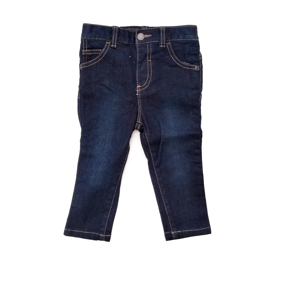 preowned perfect condition stretch dark denim jeans with zipper and snap to close